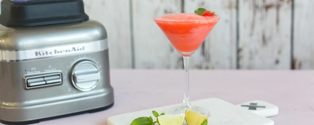 3. Sirve en copas frías y decora con una rodaja de fresa o lima.